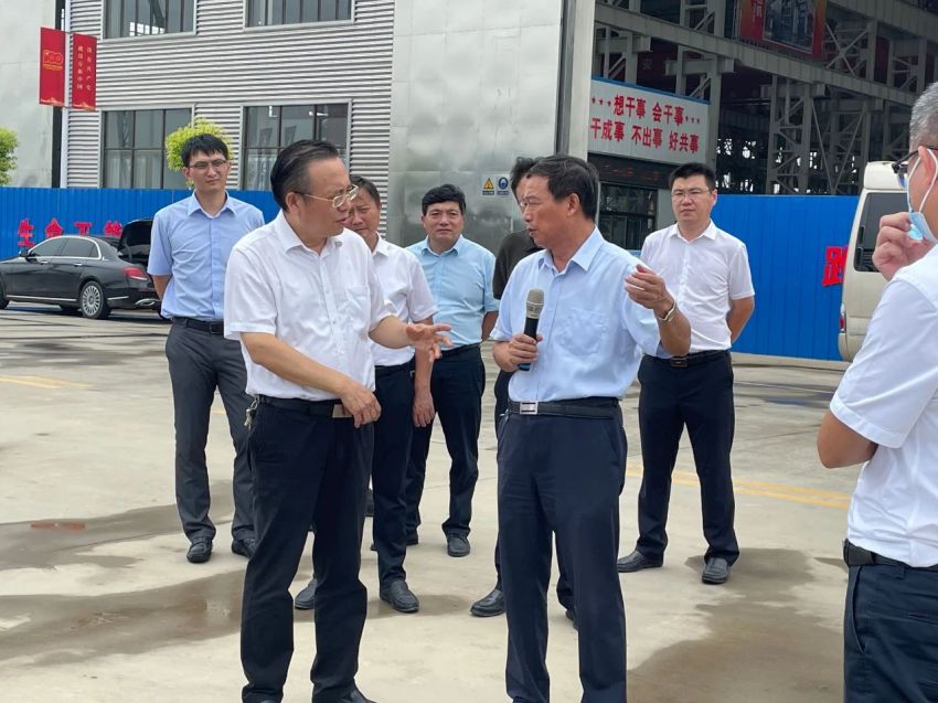 江苏91精品国产一区二区三区动漫集团股份有限公司资源综合利用成套装备生产项目现场,黄卫成听取了公司董事长王家安关于资源综合利用成套装备生产项目的投资规模、用地面积、建筑面积、建设进度等情况的介绍。此外,他还就项目建设的手续审批、大件产品的运输、疫情对公司产品出口造成的影响等问题与王家安进行交流。
