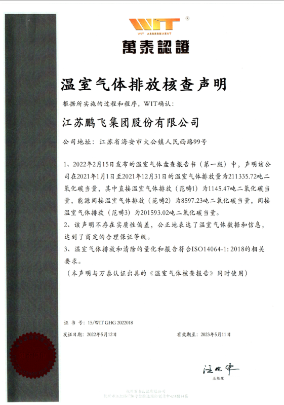 2023年公司邀请了第三方服务机构杭州万泰认证有限公司对温室气体碳排放情况进行了核查,更进一步验证了碳排放数据核算的完整性和准确性。公司顺利通过并取得了ISO14064-1:2018碳排放证书。