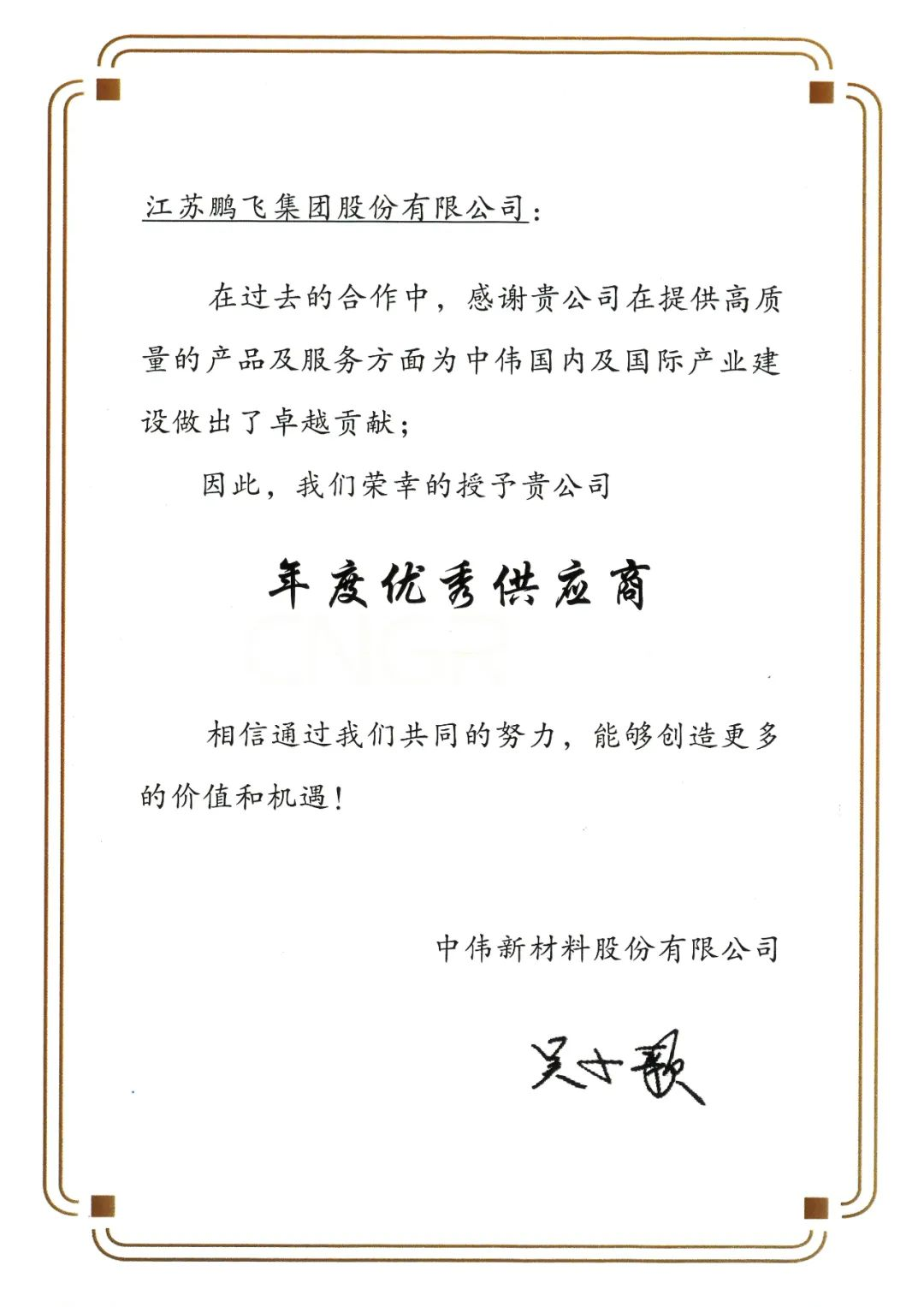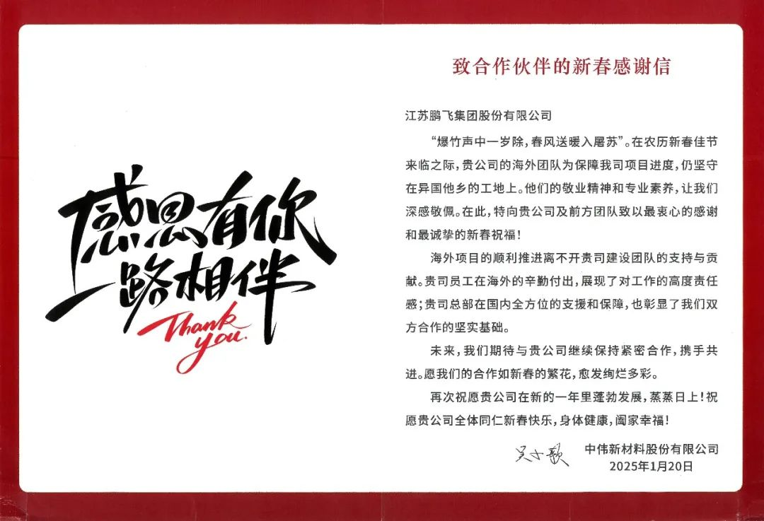 海外项目感谢信 | 年度优秀供应商