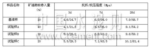 表6 磨细矿渣微粉掺入水泥中的胶砂强度