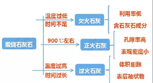 石灰石煅烧速度与温度有极大关系。在常压下,石灰石的分解温度为898℃,当温度大于925℃之后才迅速分解。当煅烧温度为900℃时,石灰石分解速度为3.3mm/h;1000℃为6.6mm/h; 1100℃为14mm/h。由此可见,提高煅烧温度,可以加速石灰石的分解。但是当煅烧温度大于1100℃时,容易出现过烧,石灰晶粒迅速增大、石灰活性变差、消化时间增长,产品质量降低。因此,在实际生产中煅烧温度应控制在1050℃左右。