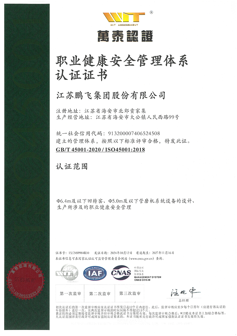 (2024年10月)职业健康安全管理体系认证证书