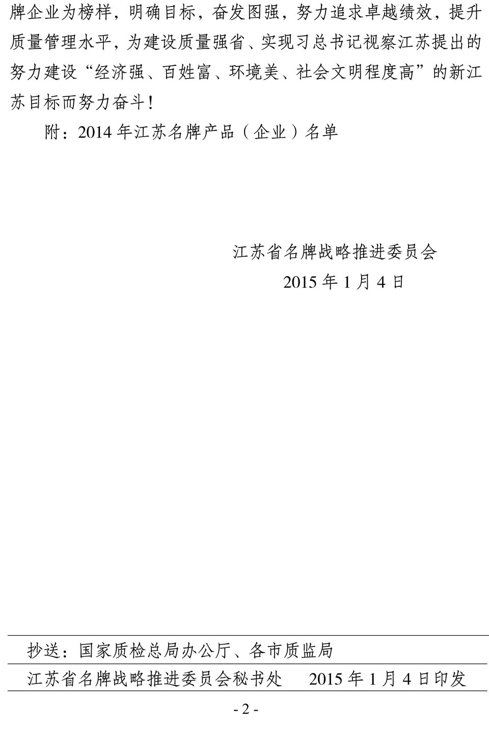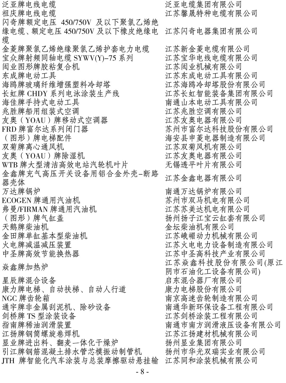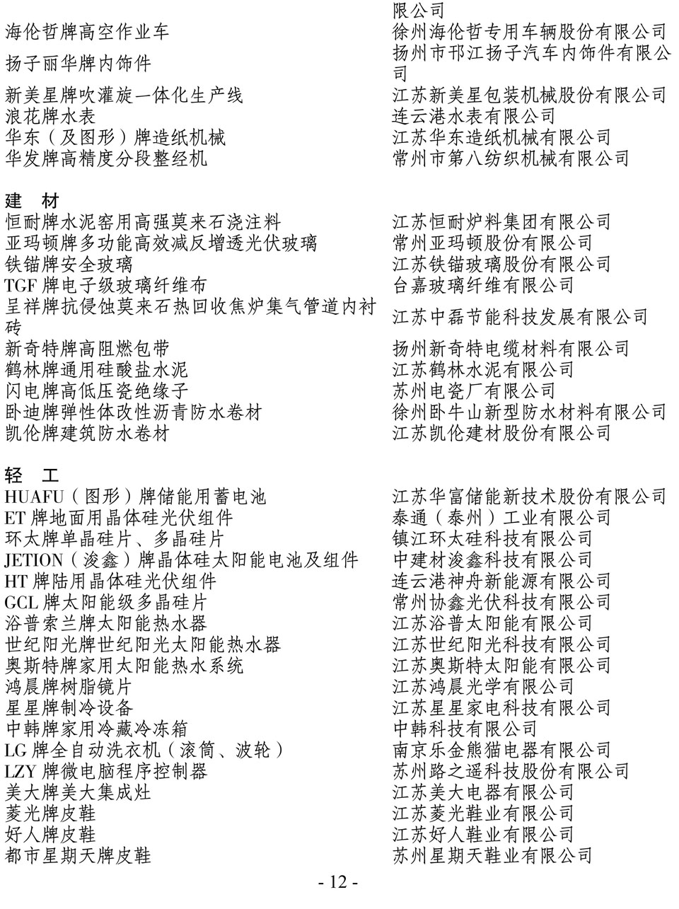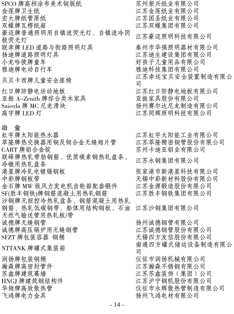 日前,江苏省名牌战略推进委员会公布了2014年江苏省名牌产品名单,“
