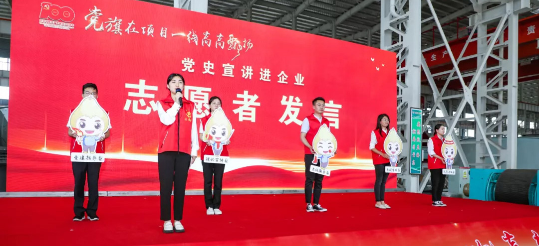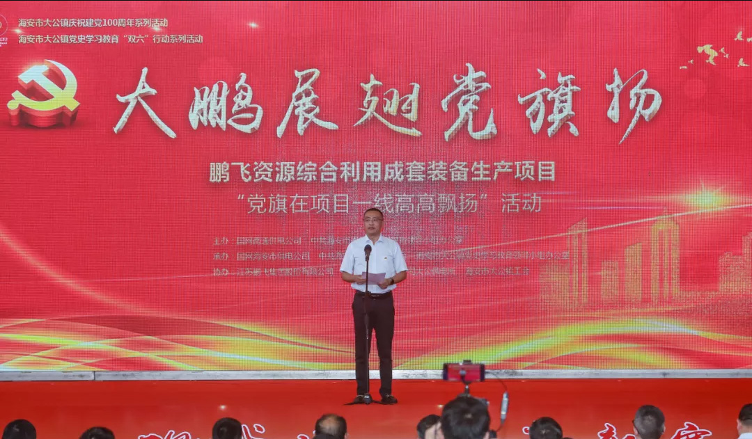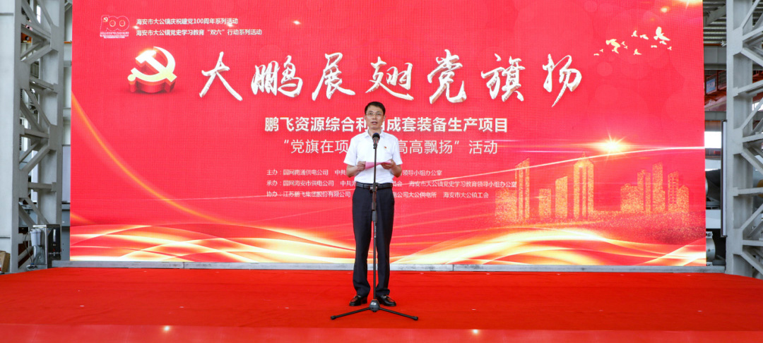 “将企业生产经营与项目建设融入党史学习教育,以党建为引领,让支部建在项目上、党旗飘在阵地上、党员冲在火线上、关爱工人在心上,切实让党旗在项目一线高高飘扬……”6月16日下午,91精品国产一区二区三区动漫资源综合利用成套装备生产项目“党旗在项目一线高高飘扬”活动举行,这也是海安市推动党史学习教育“走深”“走心”“走实”,党员干部在项目一线“建强组织筑堡垒、做优服务强项目、为民办事解难题”的真实写照。