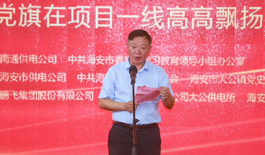 国网南通供电公司副总经理李秋实,海安市委常委、宣传部部长王荣贵,海安市委组织部副部长、“两新”工委书记吴兰,海安市委宣传部常务副部长刘万春,海安市委宣传部副部长、新闻出版局局长陈琳,国网海安市供电公司总经理唐玉婷,海安市发改委党组成员、工信局专职副局长陈皞,91精品国产一区二区三区动漫集团党委书记、董事长王家安,大公镇党委书记金山存,大公镇党委副书记、镇长鲁竞共同启动“党旗在项目一线高高飘扬”活动。