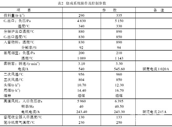 项目投产后,烧成系统的主要操作及控制参数见表2。