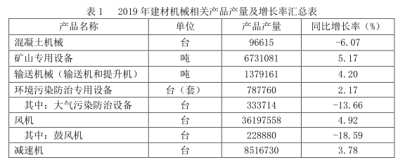 一、2019年建材机械行业经济运行基本情况