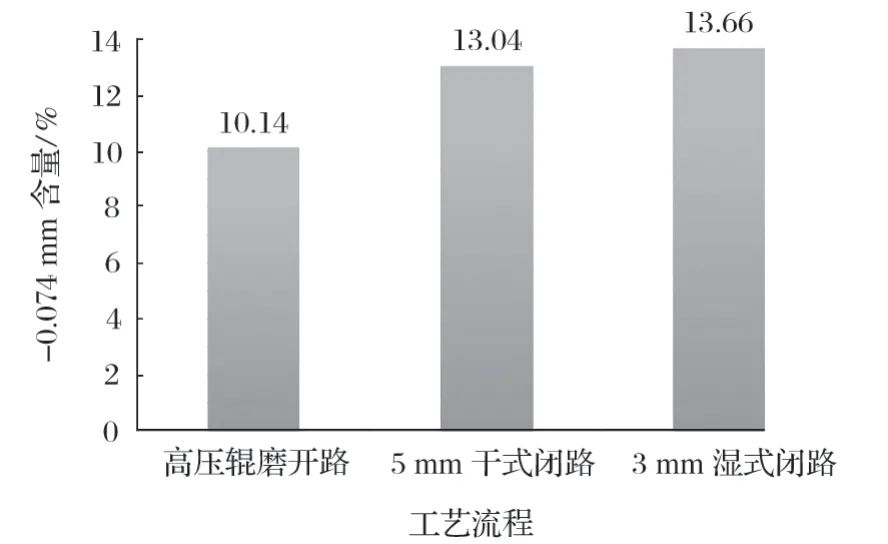 图5 不同高压辊磨工艺流程产品 -0.074 mm 含