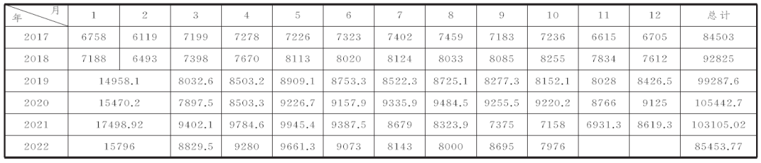 表2 2017~2022年粗钢产量统计表(单位:万吨)