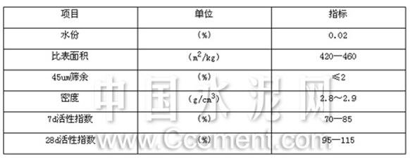由表6数据可以看出:在含有矿渣配比20%的425矿渣水泥中掺入磨细矿渣微粉取代等量水泥后,水泥的早、后期强度非但没有降低,反而有显著的提高,充分说明磨细矿渣微粉具有优良的潜在水硬活性,在水泥生产过程中对改善产品的物理力学性能具有重要意义。近年来,磨细矿渣微粉作为高活性矿物掺合料,已广泛应用于高性能、高强混凝土,并对其技术机理的研究逐步微观化、系统化、深入化。不同比表面积磨细矿渣微粉应用于混凝土中的试验数据见表7: