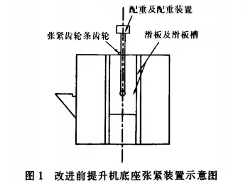 我公司有一台运载能力较大的提升机,曾出现因跑偏无法调整的情况。经仔细研究分析各种跑偏情况的可能性,将内部的皮带畚斗等全部拆卸下来,测量上下滚筒的平行度、同面度,测量提升机的箱体垂直度,检查滚筒的磨损情况和下滚筒的平衡情况,以及皮带老化情况,都没有解决问题。后来通过改进底座的配重调节装置解决了问题。到目前为止,连续使用了3年多,效果良好,没有出现问题。具体措施如下: