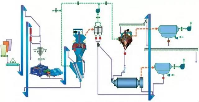 除此之外,因辊压机和球磨机为两个完全独立的循环系统,所以更加容易操作控制;通过辊压机部分动态选粉机的分选,合格的成品不经球磨机研磨直接入成品库,从而提高了球磨机的粉磨效率。