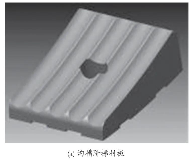优化前筒体衬板如图 1 所示。一仓采用沟槽阶梯衬板,其有效长度为 3.15 m,沟槽阶梯衬板有磨损,阶梯的高度差和沟槽可进一步优化;二仓采用小波纹衬板+4 圈活化衬板,小波纹衬板厚度为 75 mm,降低了有效内径,增加了电耗,活化衬板磨损严重,排列方式可进一步优化。