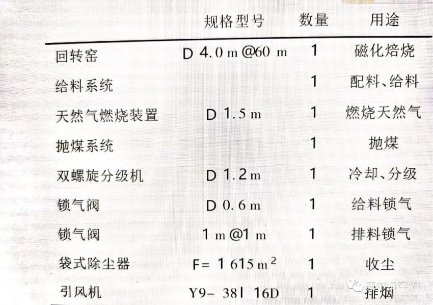 一、烧结菱铁矿回转窑参数